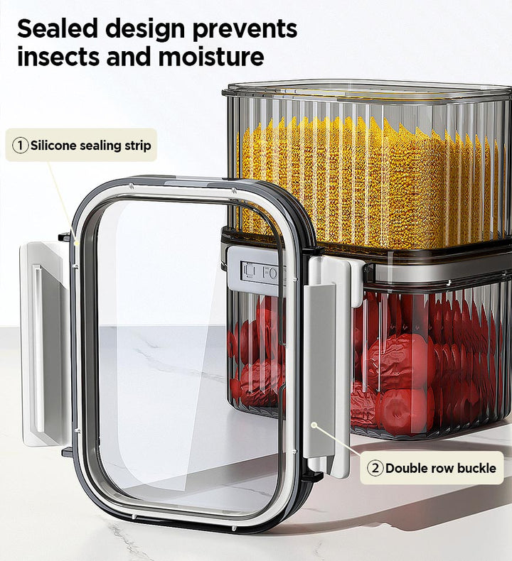 Together, this dual system provides maximum protection, effectively preventing moisture and bugs, and significantly extending the freshness of your food. It preserves the original texture, crunch, and nutritional value of your ingredients.